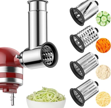 This one met all my needs. I was ecstatic to have finally found a grater that was easy to use, fast, and assembled/disassembled without issue. Not everyone has a mixer, or a Kitchen Aid specifically, so get whatever works best for you! I do recommend getting one that is metal though. I know this was a long story of a review, but it was a long journey to find this perfect grater.